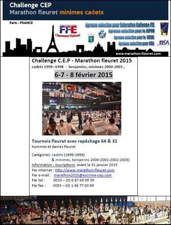 Actualité Compétition - CEP Marathon fleuret 2015 (Minimes & Cadets) - 07 & 08 février 2015 à la Halle Carpentier - Paris 13ème