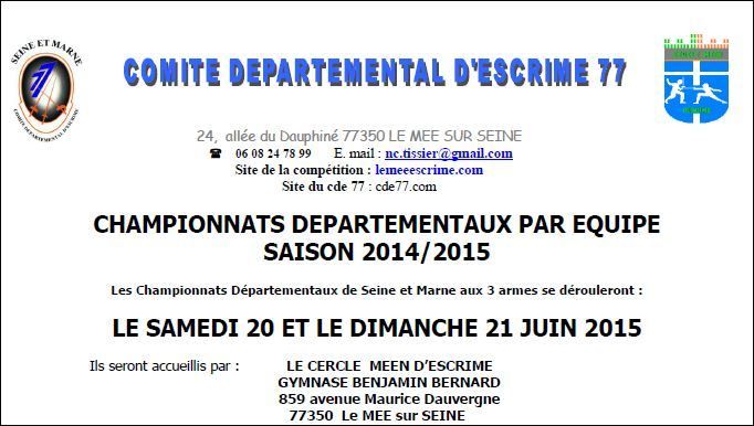 Actualité Compétition - Championnats Départementaux par Equipe - 20 & 21 juin 2015 à Le Mée sur Seine